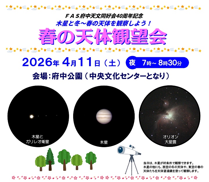 FAS府中天文同好会当会は、東京都府中市内にて不定期に天体観望会を実施しております。近隣の方は、ぜひご参加ください。