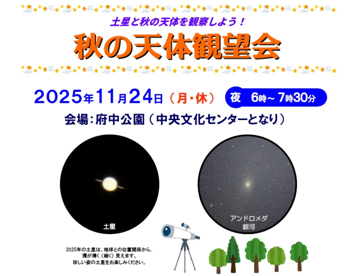 環の細い(薄い)土星や秋の天体を観望します。